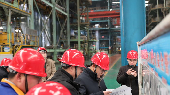 2026年2月5日上午,大冶市副市长吴飞莅临山力兴冶薄板公司检查特种设备隐患排查整改及工贸企业安全生产工作,山力兴冶薄板公司总经理刘跃进陪同参观生产车间,并就公司生产经营、安全生产、春节期间安全部署等情况作简要汇报。
